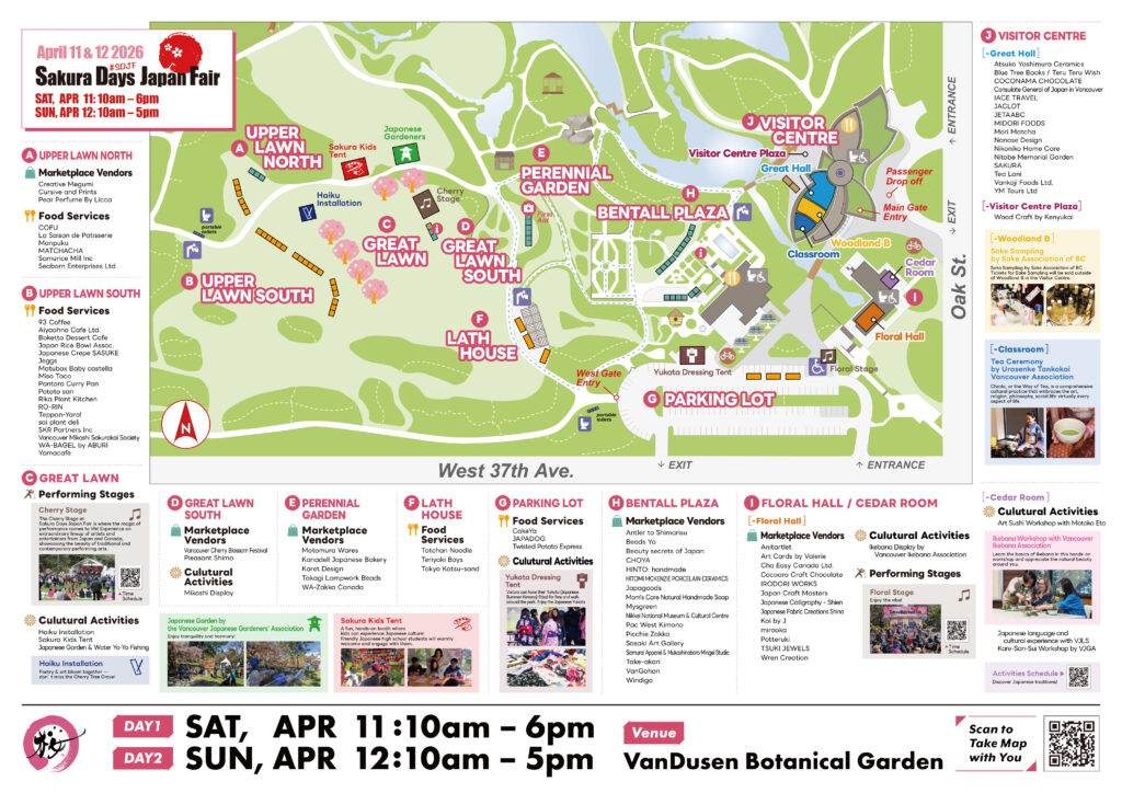 Planning your visit? Use our interactive area map to navigate the festival with ease. From vendor booths and cultural displays to performance stages and food areas, this map will help you make the most of your day at VanDusen Botanical Garden.