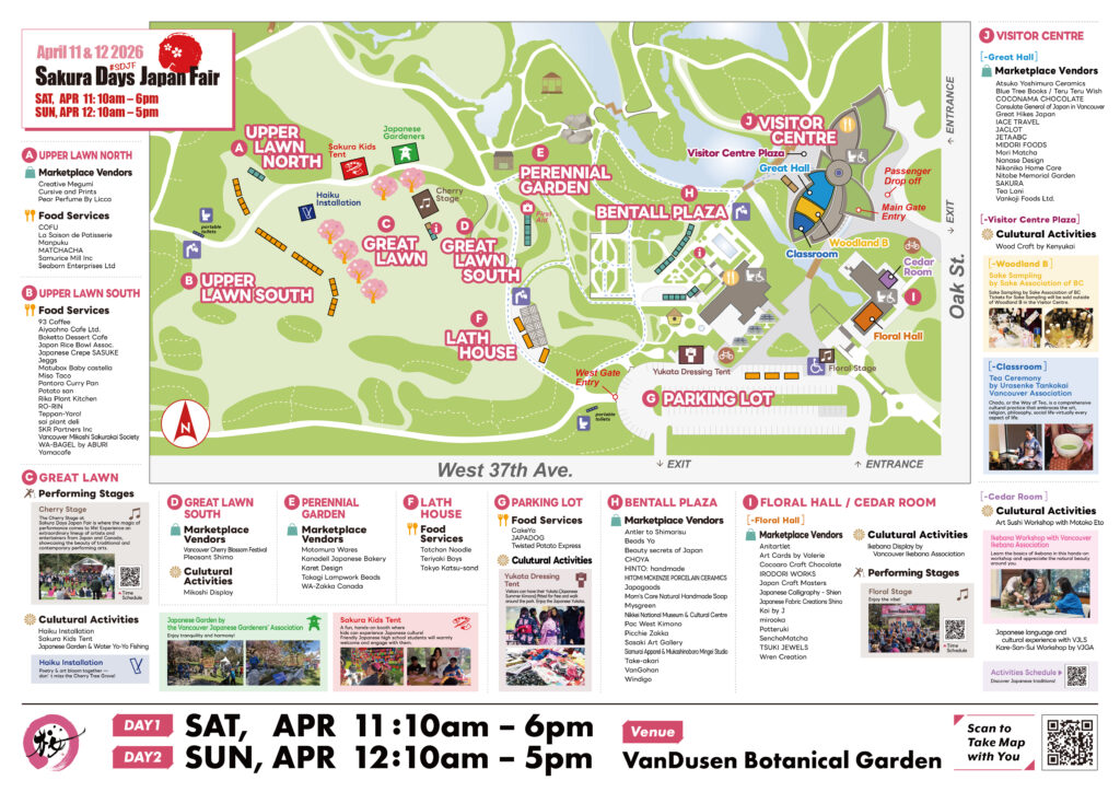 Planning your visit? Use our interactive area map to navigate the festival with ease. From vendor booths and cultural displays to performance stages and food areas, this map will help you make the most of your day at VanDusen Botanical Garden.