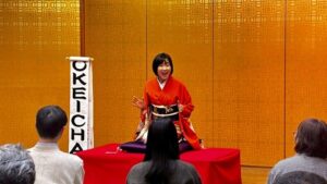 Hailing from Japan, OKEICHAN performs rakugo, traditional Japanese comic storytelling from Edo-era daily life (400 years ago). Sitting on stage, she brings multiple characters to life via voice, expressions, gestures, and props for humorous delight.
